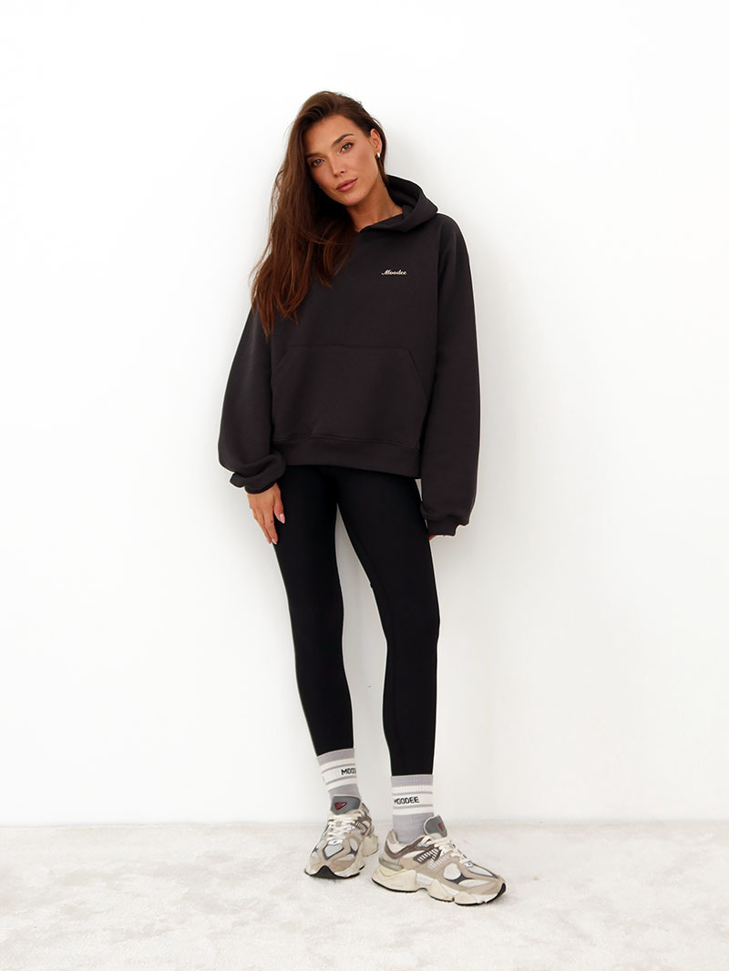 Legginsy Second Skin to absolutny must-have w Twojej garderobie. Ich wyjątkowo wygodny krój idealnie dopasowuje się do ciała, podkreślając jednocześnie jego kształty. Wysoki stan i szeroka gumka subtelnie wysmuklają sylwetkę, podczas gdy przeszycia z tyłu nadają optyczną długość nogom, a specjalny wykrój podnosi pośladki. Wykonane z materiału o satynowym wykończeniu, legginsy te są niezwykle przyjemne w dotyku, zapewniając komfort noszenia na całodniowe wyjścia. Dzięki swojemu modelującemu efektowi, pozostają one tak wygodne jak druga skóra. Doskonale sprawdzają się zarówno w codziennych stylizacjach, jak i podczas treningu, zapewniając pełną ochronę i komfort. Ich klasyczny, czarny kolor z delikatnym logo MOODEE® dodaje im elegancji i uniwersalności.
